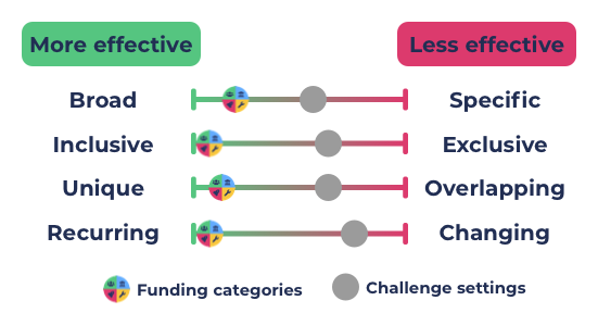 Funding categories have been created based on the more effective categorisation approaches. Adopting these approaches can mean making funding categorisation more simple, easy to use, efficient, scalable or egalitarian.